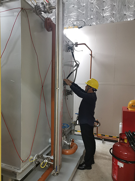 11月7日凌晨6點,東方剛露出魚肚白。孫利勤踏著晨露,帶著虹潤產品和測試安裝設備馬不停蹄來到了珠海港口,經過2個多小時的海上跋涉,終于到了海上風電升壓站現場,對于客戶提到的技術要求,孫利勤先是對現場環境進行測試和判斷,與客戶認真溝通制定了技術應用方案,并于次日成功安裝。虹潤儀表現場表現良好,對海上升壓站TC690L柴油發電設備液位控制精度高且運行穩定,得到了客戶的好評。解決了客戶的技術需求,虹潤人的心也放下了,這次跨越大海的技術服務終于不辱使命。