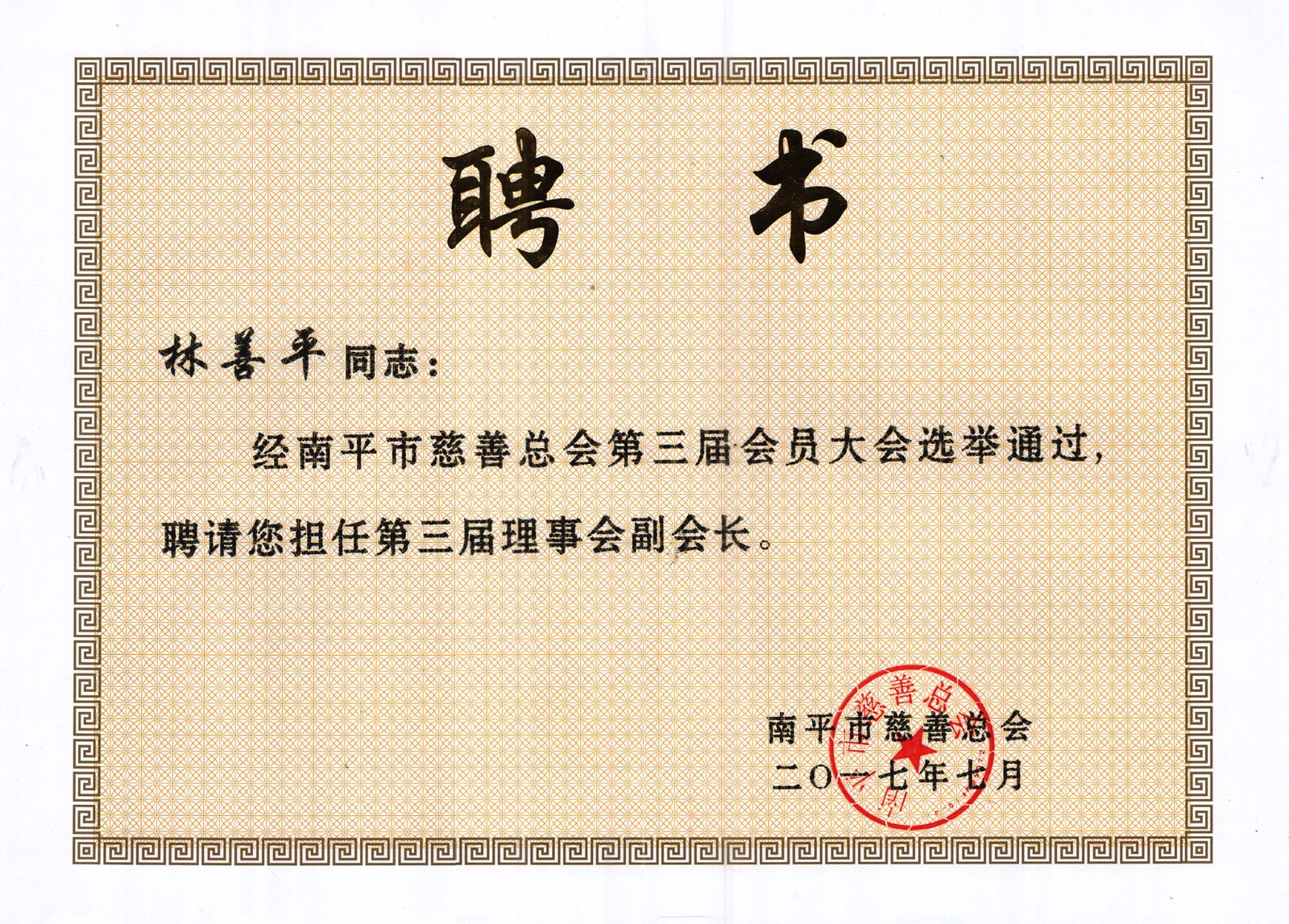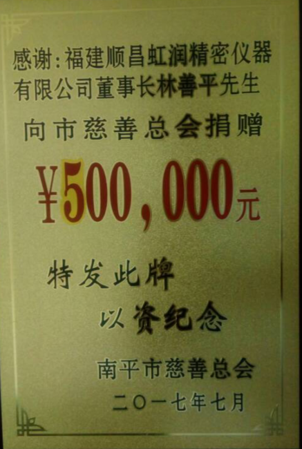 2017年7月28日,南平市慈善捐贈(zèng)大會(huì)暨市慈善總會(huì)換屆會(huì)議在南平市委舉行,福建順昌虹潤(rùn)董事長(zhǎng)林善平再次當(dāng)選為南平市慈善總會(huì)第三屆理事會(huì)副會(huì)長(zhǎng),這也是林善平董事長(zhǎng)第三次當(dāng)選此職。同時(shí),在本次慈善捐贈(zèng)大會(huì)上,他再次向市慈善總會(huì)捐款50萬(wàn)元。他表示,他還將一如既往,繼續(xù)加大對(duì)社會(huì)公益事業(yè)的支持力度,積極投身公益和慈善事業(yè),為南平市的慈善事業(yè)作出更大的貢獻(xiàn)。目前,林善平董事長(zhǎng)各項(xiàng)公益捐款累計(jì)已達(dá)1000余萬(wàn)元。