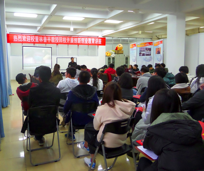 會后,校董事會董事、客座教授林善平參觀了我校大學生創新創業中心,并為創客們做了一場創新創業的專題講座,講座現場氣氛熱烈,互動良好,同學們紛紛表示受益匪淺,今后要更加努力學習專業知識,找準定位,做好清晰的職業規劃。