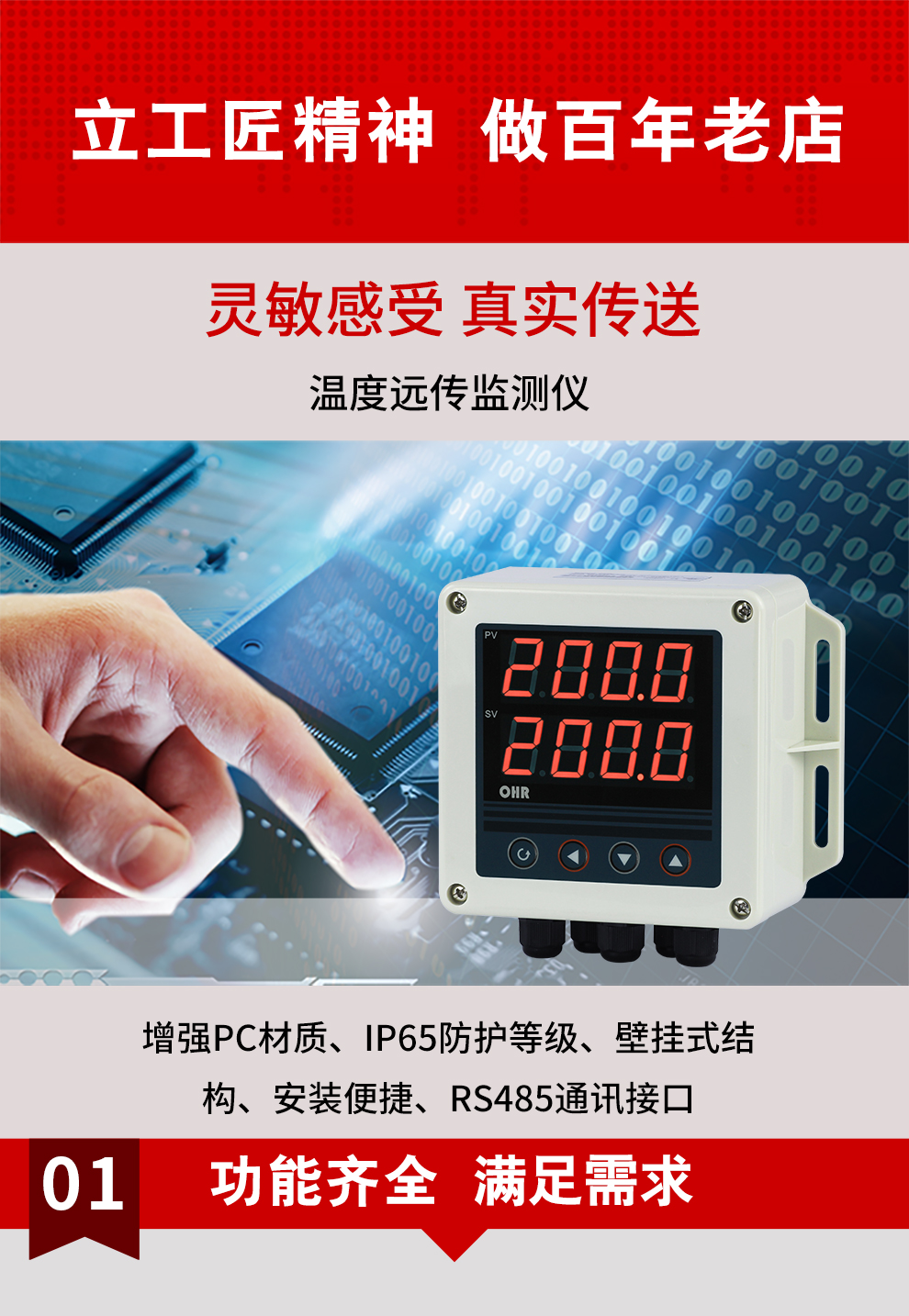 虹潤公司是專業生產多路溫度巡檢儀的國家專精特新“小巨人”企業,生產的溫度遠傳監測儀,具有兩路PT100信號輸入,壁掛式結構,IP65防護等級,高抗干擾,帶RS485通訊輸出等特點。產品獲得巡回檢測顯示方法及裝置、儀表殼體等2項國家發明專利,主持起草工業過程控制系統用模擬輸入兩位或多位輸出儀表、物聯網智能溫度儀表通用技術條件等2項國家標準以及通信系統多通道數據采集控制終端規范軍用標準,參與國際5G標準制定,取得雙路回路溫度遠傳監測儀等2項相關軟件著作權。產品廣泛應用于電力、石化、冶金、制藥、水處理、機械配套等各種工業現場。
