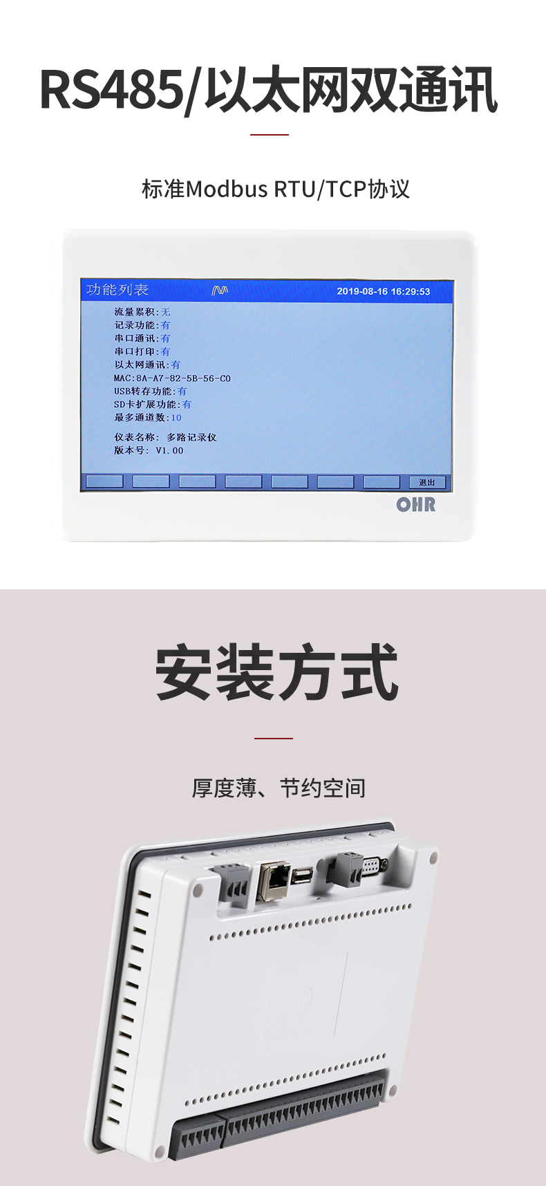 OHR-T系列觸摸超薄流量無紙記錄儀